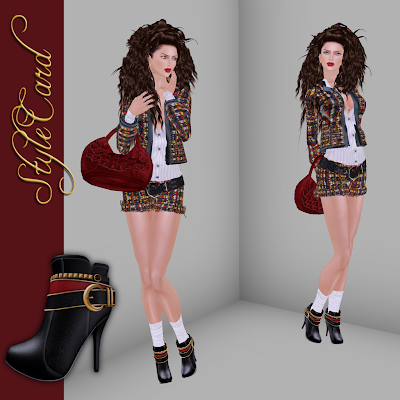 The little Chanel inspired tweed suit, features some terrifically cute shorts, it is by BENI (you can find an olive version of the Jacket for 1L$ at the store). The white shirt is borrowed from the Madelene White Outfit from DCNY, and the great black belt is by COCO. The gorgeous skin is by LeLutka, it is their latest release, IFE, this particular one is being sold as a fundraiser for RED CROSS, I love those pouty lips to death!